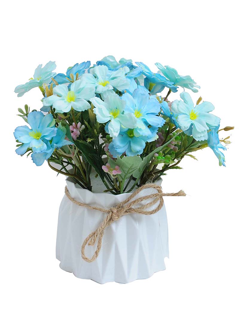 Addurniadau Lluosog: Dyma'r trefniant blodau bach perffaith ar gyfer addurniadau awyr agored a dan do.Gallwch ei roi mewn porth y tu allan, bwrdd balconi a bwrdd bwyta y tu mewn, desg swyddfa, unrhyw silff, gan ddod â llawer o ffresni i unrhyw le.Gellir defnyddio'r blodau ffug hyn i addurno cegin neu chwarae rôl ategolion ystafell ymolchi.Mae hefyd yn ddewis da fel addurniadau parti llygad y dydd.