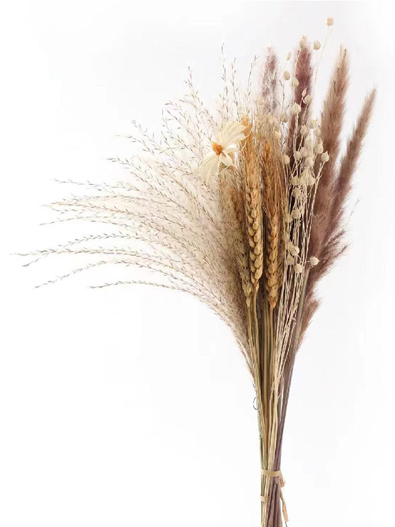 Torkat blomgräs allt gjort av äkta färskblommigt gräs.Torkade blommor gräs har många olika färger.Och med bred användning, som heminredning, bröllopsdekoration, festdekoration Etc. Torkade blommor gräs kan lating ca 3-5 år.Det är mycket populärt från 2019 till 2021.