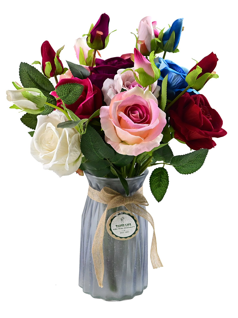 Renkler: Gerçekçi çiçekler, zengin renkler: Beyaz, kırmızı, açık pembe, mavi, siyah, sarı, pembe, şampanya, mor, karışık renk ve daha fazlası mevcuttur.Yapay güller taze çiçeklere göre daha uzun ömürlüdür.