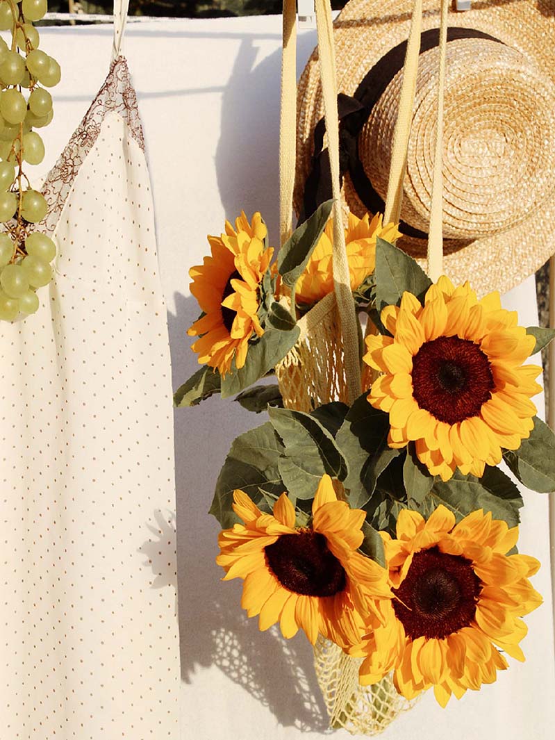 Upscale wo awọn sunflowers atọwọda jẹ pipe fun eyikeyi iṣẹ akanṣe ilẹ-ilẹ tabi ara titunse, ko ni akoko agbe, pruning, ati itọju miiran, O rọrun lati ṣetọju ju awọn ododo titun lọ, ti ifarada diẹ sii.